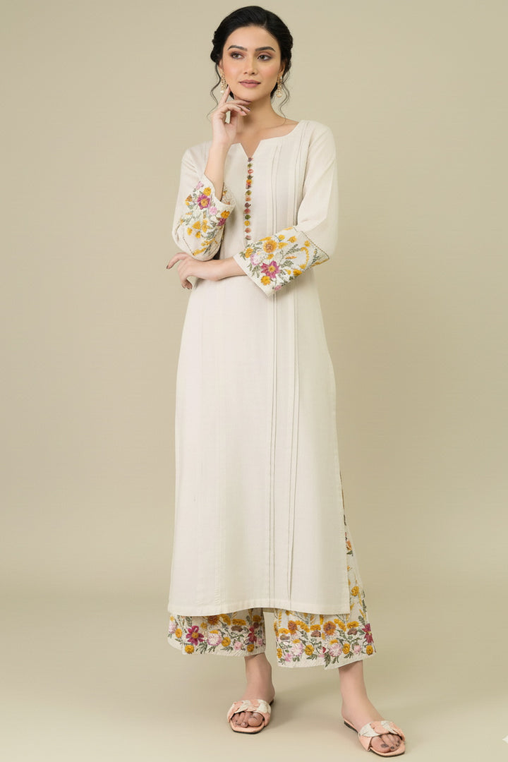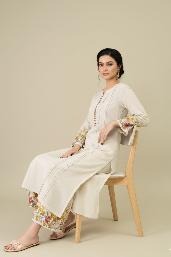 Additional Description | The Noor-e-Gul is a graceful 2-piece ensemble. Featuring intricate embroidery on the sleeves and palazzo, this set showcases meticulous craftsmanship. |
