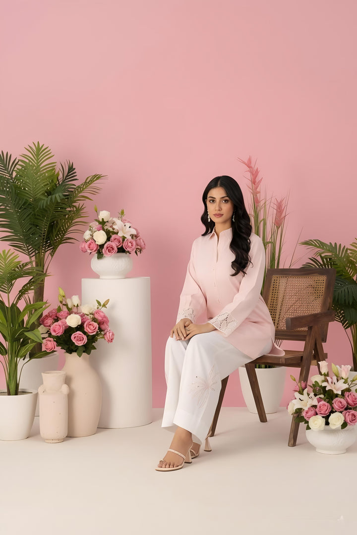 | Description | A stylish 2-piece co-ord set crafted from soft lawn fabric in a soothing baby pink shade. Featuring a trendy tunic top paired with matching bottoms, this outfit is designed for daily comfort while keeping you chic during the summer season. Perfect for basic and casual wear with a fusion touch. |